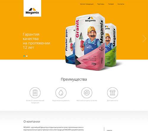 На протяжении своей деятельности более чем 10 лет «MEGAMIX» накопил богатейший опыт работы в сфере производства строительно-отделочных материалов, и сегодня список ассортимента достиг свыше 40 наименований готовой продукции. Это не только стандартные сухие строительные смеси, такие как шпаклевка или штукатурка, но и клеи для керамических, гранитных, мозаичных и т.п. плиток, кладочный раствор, наливной пол, гидроизоляционные материалы, декоративные фасадные покрытия, специальные грунтовки, водоэмульсионные краски, обойные клеи и другие.