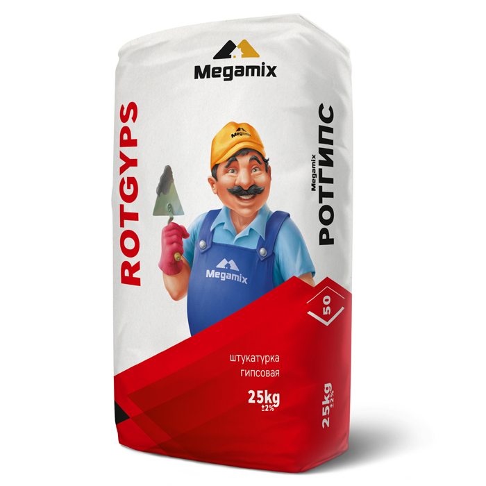 Dry mortar is based on gypsum, made in accordance with ГОСТ 31377-2008. It intends for interior works: for alignment and plastering stone, brick, plaster, concrete, monolithic concrete, etc. walls. The layer thickness should be from 2 sm till 13 sm. It possesses the high adhesive characteristic. It does not flow and clot. The air flow properties provide the balance the humidity level in the room. It makes available for the thermal insulation. It has energy-saving and fire-resistant properties.